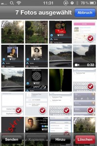 Unter iOS 5.1 besteht die Möglichkeit nicht nur ein ausgewähltes Foto zu löschen, per Email oder SMS zu versenden, bzw. zu drucken, sonder gleich mehrere.
