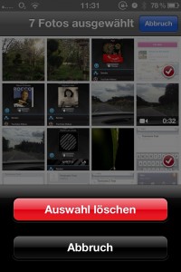 Nun tippt man und markiert damit einfach die Bilder, die man löschen möchte. Anschließend tippt man unten rechts auf den roten Button „Löschen“.